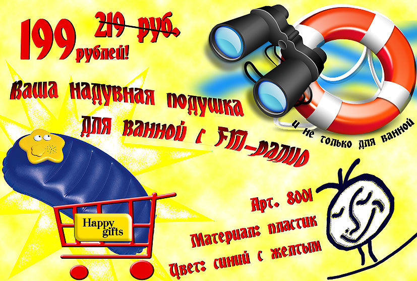 Надувная подушка с ритмичным FM-радио – Ваш спасательный круг с большими музыкальными возможностями, и не только на бескрайних просторах любимой ванны. А теперь и по суперцене!!!
