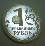 Этот рубль символизировал направленность деятельности ДЕКО Медиа не только в производстве изделий из дерева, но и в изготовлении относительно недорогой подарочной упаковки из картона.