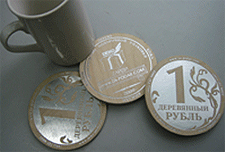 Нашим посетителям вручался в качестве подарка ДЕРЕВЯННЫЙ РУБЛЬ!