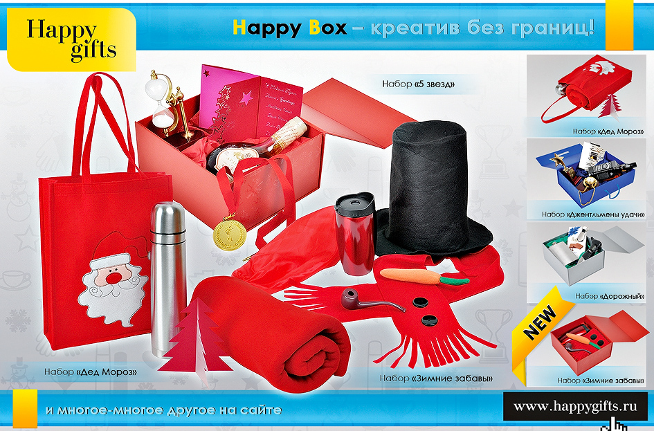 Возьмите за основу вашего подарка идеи от Happy Box или придумайте что-то свое. И пусть он будет единственным и неповторимым для ваших друзей, коллег и партнеров!