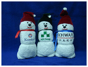 Забавный снеговичок из высококачественного махрового полотенца с вышитым логотипом вашей компании в индивидуальной упаковке станет прекрасным корпоративным подарком и носителем рекламы вашей компании, а также будет долго радовать и напоминать о праздничных новогодних днях.
