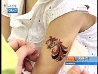 Позже Дмитрий Шестаков сделал переводные картинки на тело, цветные, смотрятся не хуже настоящих. Пока что коллекция состоит из 24 наклеек, все цвета пламени и свежей зелени, изображают ягоды, цветы, диковинных жар-птиц и хохломских рыб. Эти сувениры легко можноувезти домой, однако надоесть они не успеют, т.к. стереть их можно с помощью одеколона. Однако временные татуировки устойчивы к воде и большинству видов мыла.