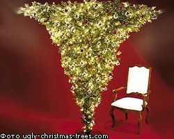 Успехом пользуется сувенир в виде новогодней елки, которая крепится на подставке макушкой вниз. В последние два года такие елки вошли в моду из-за нестандартного вида. Более того - для них продаются специальные дизайнерские игрушки.