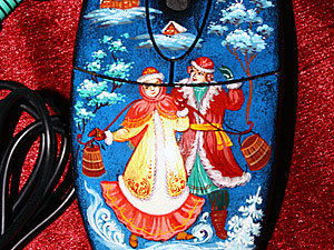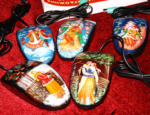 Компьютерный манипулятор, расписанный по старинной технологии - неплохой бизнес-сувенир. Заказывают их у мстерских умельцев целыми партиями, хотя можно изготовить даже одну штуку. Цена зависит от размера и количества мелких деталей рисунка.