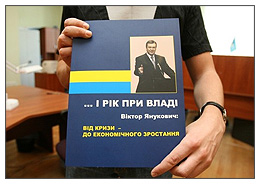 Подарок, который приготовили для Януковича в честь его двухлетнего пребывания на посту премьер-министра Украины, оказался испорченным. 100 сигнальных экземпляров книги Януковича "... И год у власти" были напечатаны с ошибкой, - сообщает газета «Сегодня». На обложке книги изображен флаг Украины, перевернутый вверх ногами: желтая полоса сверху, а синяя – снизу. Теперь книга будет перепечатываться в срочном порядке.