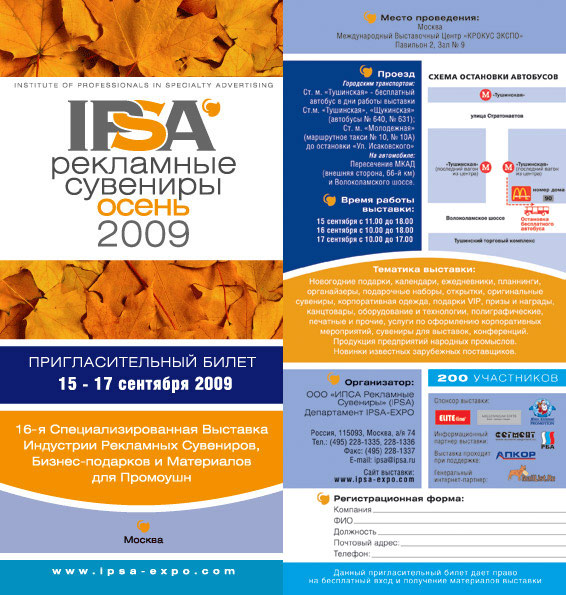Выставка IPSA Осень 2009 является специализированной выставкой, посвященной деловым подаркам, бизнес - сувенирам и другой продукции, предназначенной для продвижения на рынке корпоративных клиентов. Участники выставки имеют возможность прямого общения с потенциальными клиентами - конечными заказчиками и агентствами.